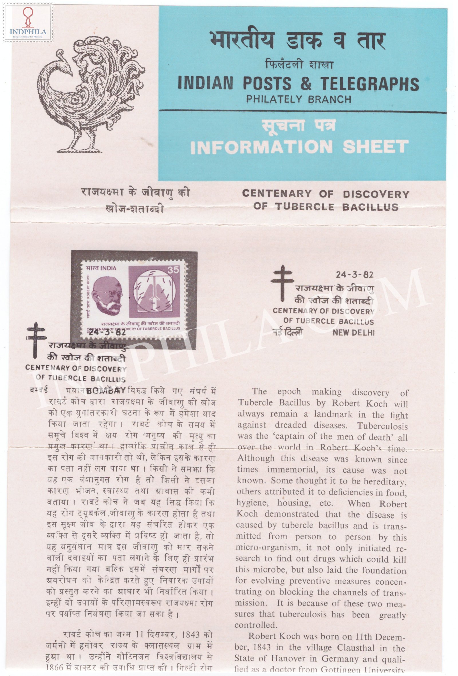Centenary of Robert Kochs Discovery of Tubercle Bacillus Brochure with First Day Cancellation 1982 Issued By Postal Department