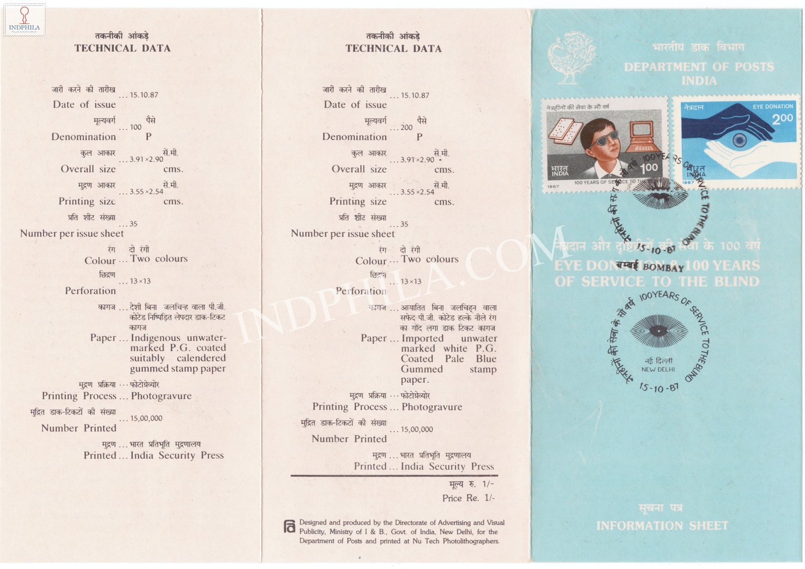 Centenary of Service to Blind Brochure with First Day Cancellation 1987 Issued By Postal Department