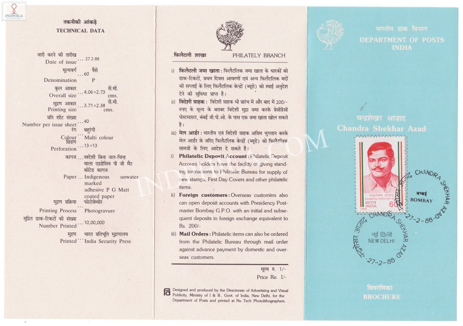 Chandra Shekhar Azad Brochure with First Day Cancellation 1988