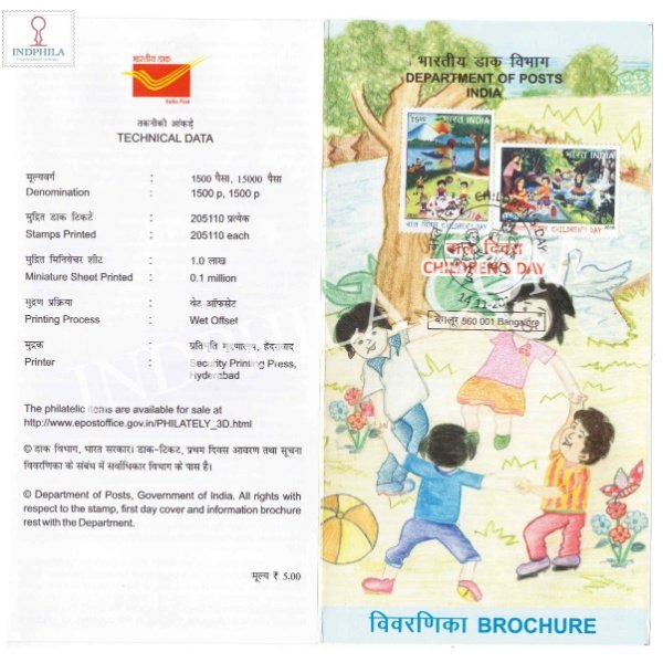 Childrens Day Brochure With First Day Cancelation 2016