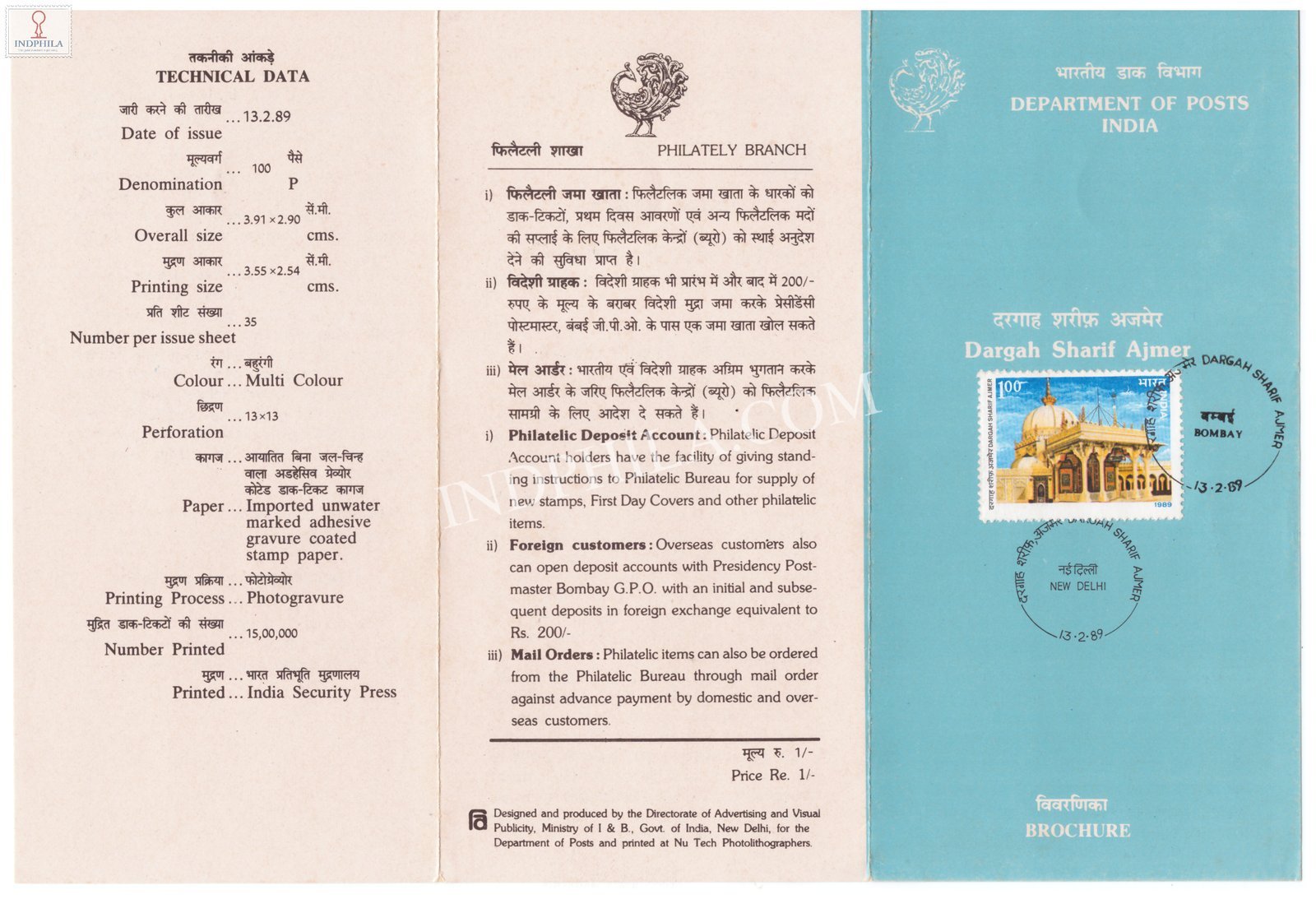 Dargah Sharif Ajmer Brochure with First Day Cancellation 1989