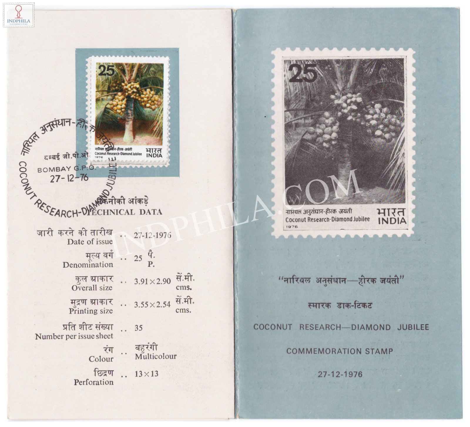Diamond Jubilee of Coconut Research Brochure with First Day Cancellation 1976