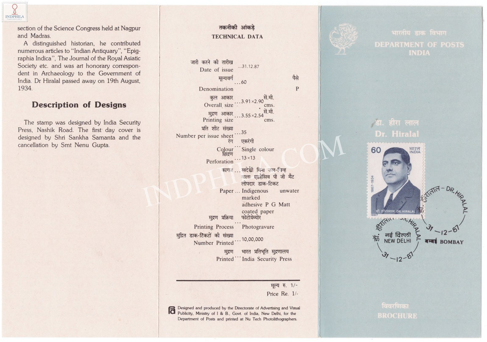 Dr Hiralal Brochure with First Day Cancellation 1987