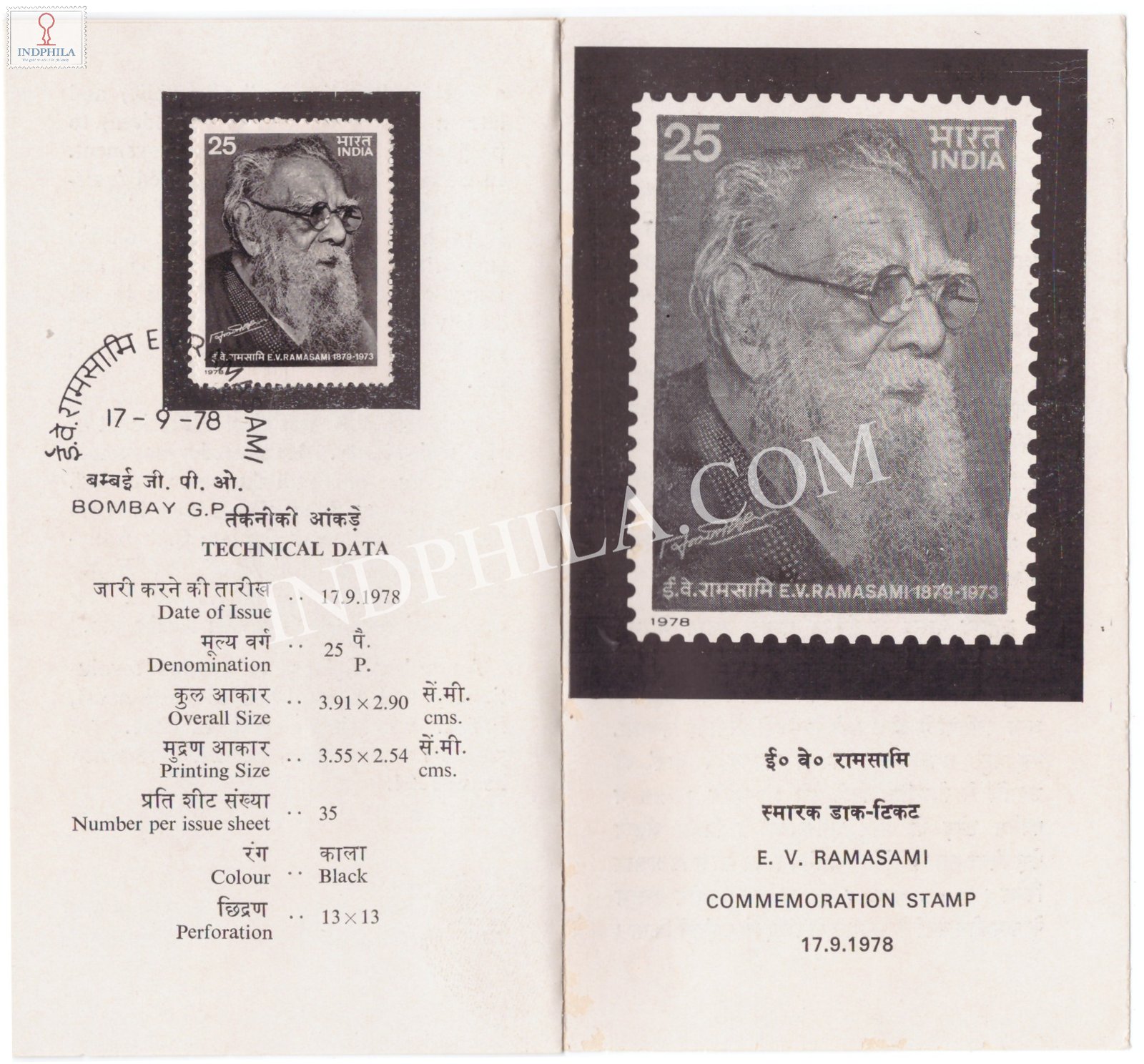 E V Ramasami Brochure Brochure with First Day Cancellation 1978 Issued By Postal Department