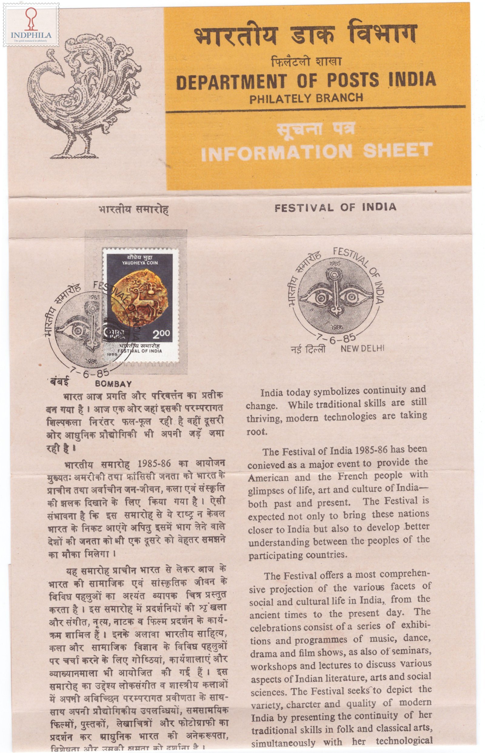 Feastival of India Brochure with First Day Cancellation 1985