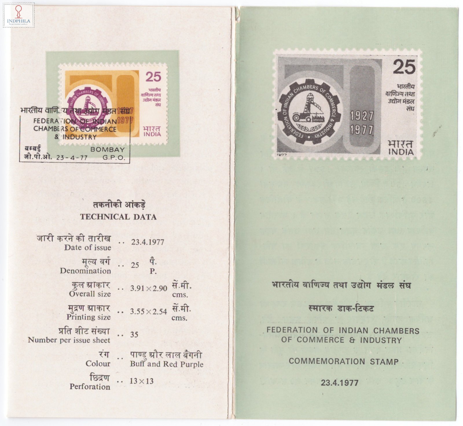 Federation of Indian Chambers of Commerce and Industry Brochure with First Day Cancellation 1977