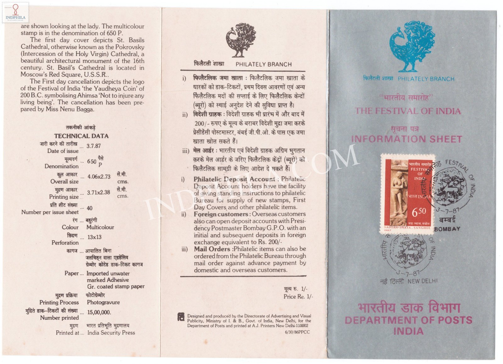 Festival India in USSR Brochure with First Day Cancellation 1987 Issued By Postal Department