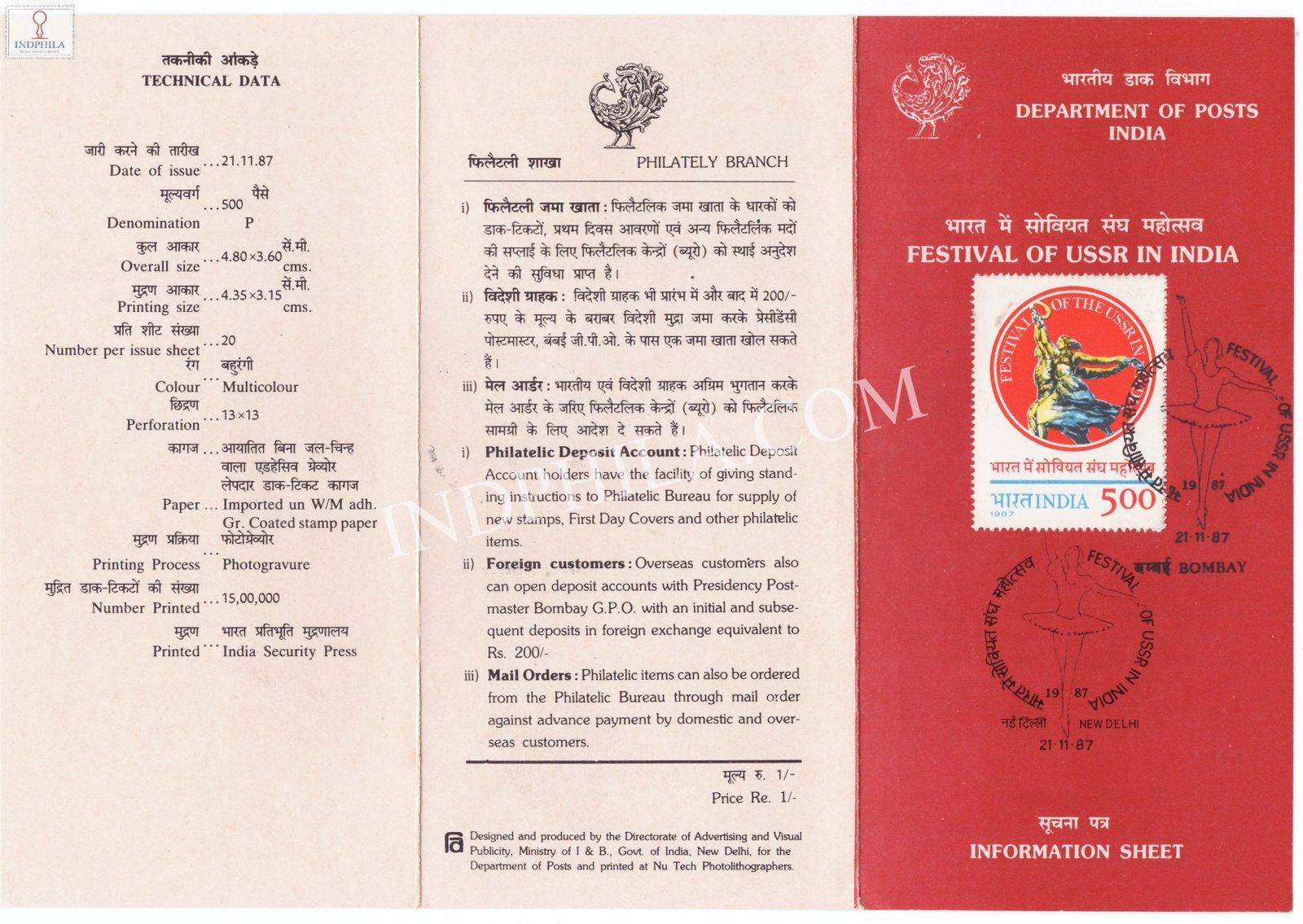 Festival of USSR in India Brochure with First Day Cancellation 1987 Issued By Postal Department