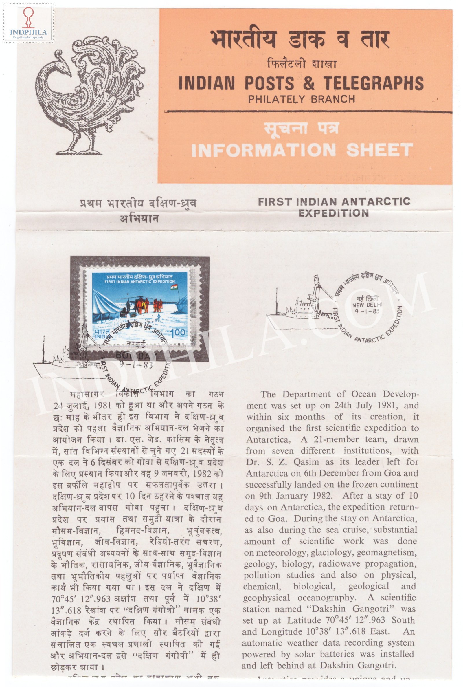 First Indian Antarctic Expedition Brochure with First Day Cancellation 1983 Issued By Postal Department