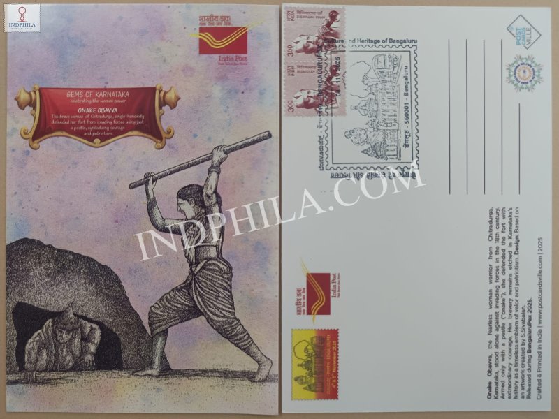 Gems of Karnataka Onake Obavva Cancelled Picture Postcard of Released On The Occasion Bengalurupex 2025 Issued By India Post