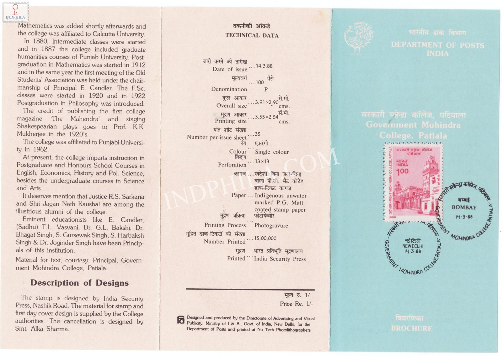 Government Mohindra College Patiala Brochure with First Day Cancellation 1988