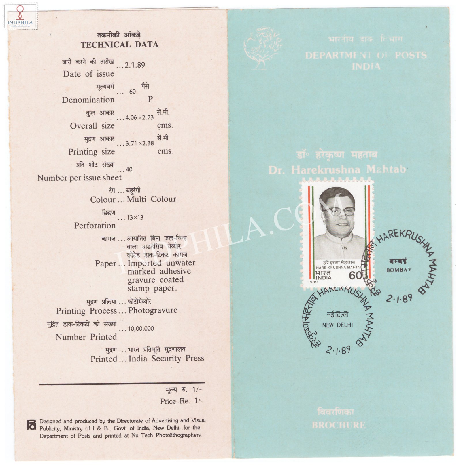 Hare Krushna Mahtab Brochure with First Day Cancellation 1989