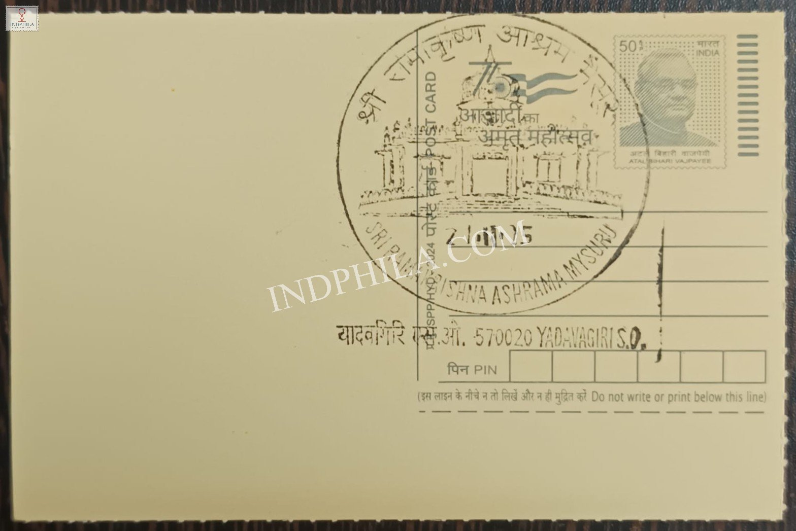 Inaugural Day Permanent Pictorial Cancellation of Sri Ramakrishna Ashrama Mysuru 21-11-2025 on Postal Stationery Postcard Issued By India Post