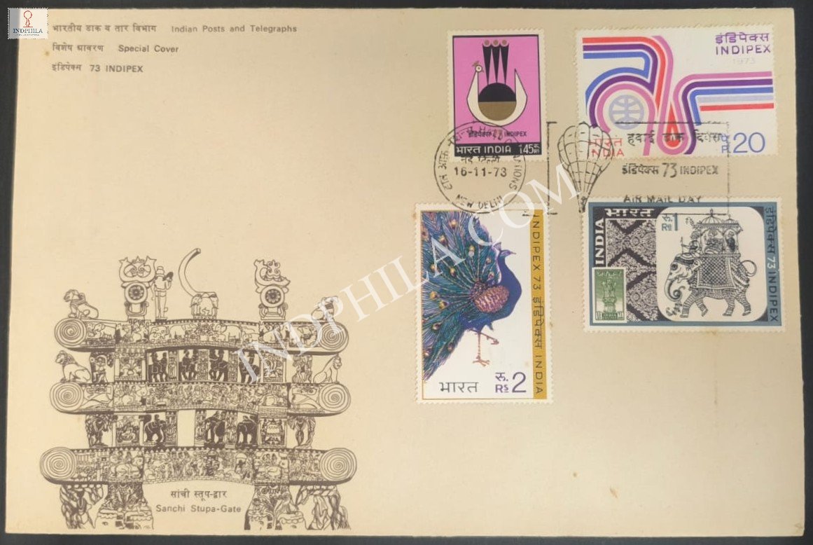 India 1973 Special Cover of 1973 Indipex Indian International Philatelic Exhibition 1973 with Air Mail Day Cancellation 1Issued By India Post