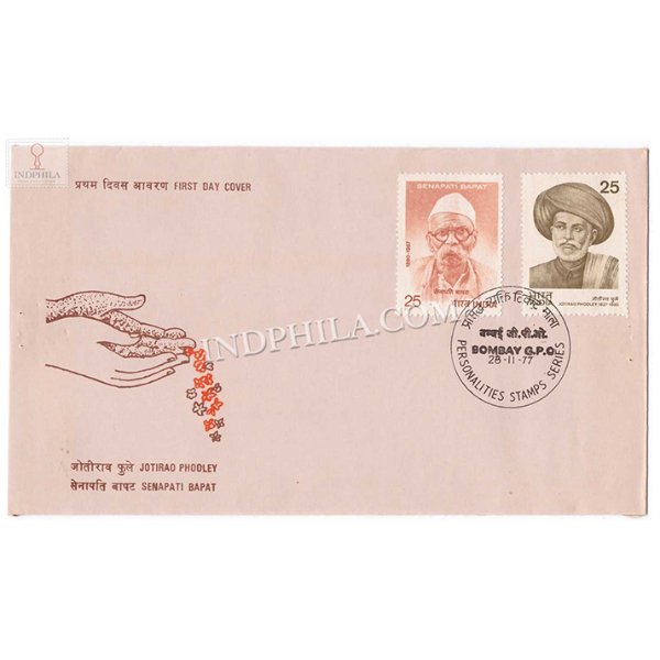 First Day Cover Of Indian Personalities J Phooley And S Bapat Was Released On 28 Nov 1977