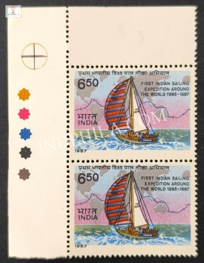 India 1987 Indian Army Around The World Yacht 1985 To 87 Mnh Strip of 2 Traffic Light Stamp – Issued By Postal Department