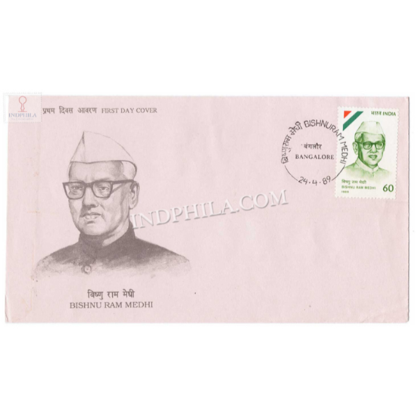 First Day Cover Of Birth Centenary Of Bishnu Ram Medhi Was Released On 24 Apr 1989 – Issued By India Post
