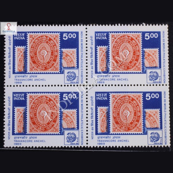 Block Of 4 Commemorative Stamp Of India-89 World Philatelic Exhibition Travancore Anchal