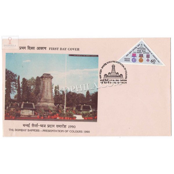 First Day Cover Of Presentation Of New Colours To Bombay Sappers Was Released On 21 Feb 1990 – Issued By India Post