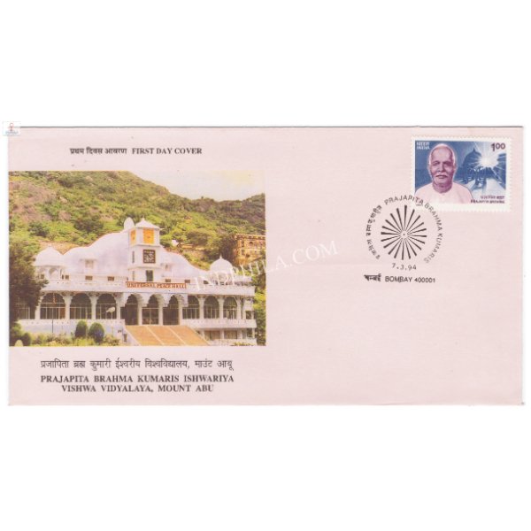 First Day Cover of 25th Death Anniversary of Prajapita Brahma was released on 7 Mar 1994 FDC