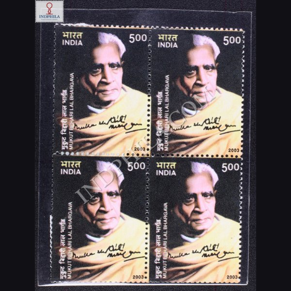 Commemorative Block Of 4 Stamp On – Mukut Bihari Lal Bhargava – Issued By Postal Department