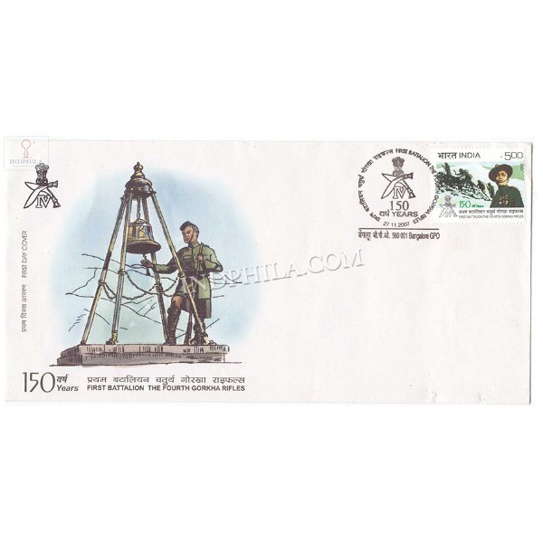 First Day Cover Of 150 Years Of First Battalion The Fourth Gorkha Rifles Was Released On 27 Nov 2007 – Issued By India Post