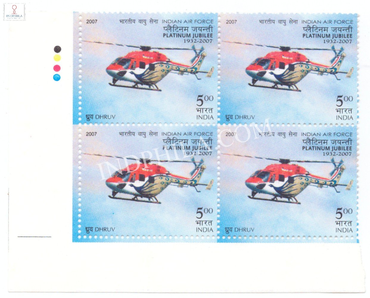 India 2007 Indian Air Force Platinum Jubilee Duruv MNH BLOCK OF 4 TRAFFIC LIGHT Stamps Issued By India Post