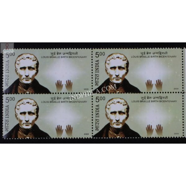 Block Of 4 Commemorative Stamp Of Louis Braille Birth Bicentenary