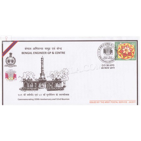 APO Cover on – 209th Anniversary and 52nd Reunion Bengal Engineer GP & Centre was released on 8th November 2011 – Issued By Army Postal Service