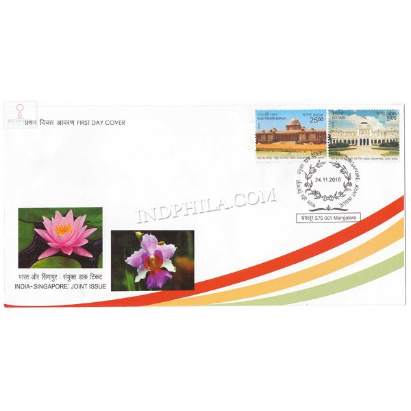 First Day Cover Of Bicentenary Of India Singapore Bilateral Relationship Joint Issue Was Released On 24 Nov 2015 – Issued By India Post