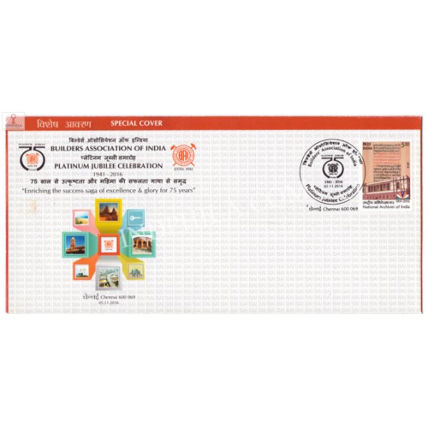 India 2016 Special Cover of Platinum Jubilee Celebration of Builders Association of India 2016 Chennai