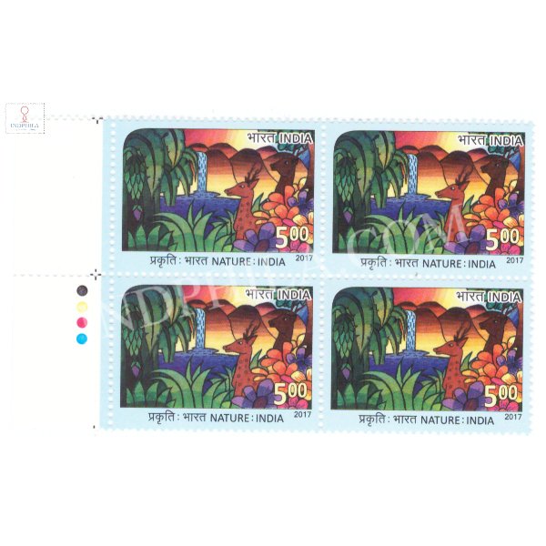 Mnh Block Of 4 Traffic Light Stamp On Nature India Deer