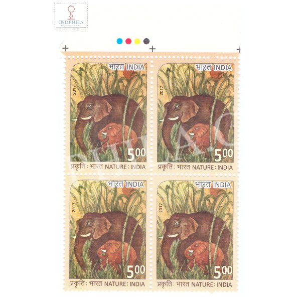 Mnh Block Of 4 Traffic Light Stamp On Nature India Elephant