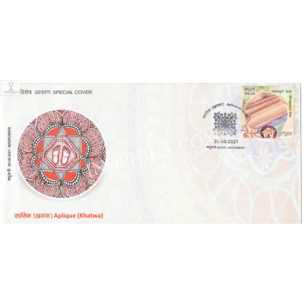 GI Tag Special Cover of Aplique Khatwa was released on 26th August 2021 Madhubani Bihar – Issued By India Post