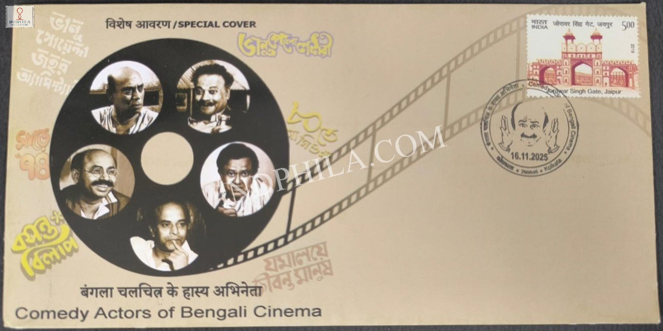India 2025 Special Cover of Comedy Actors of Bengali Cinema was released on 16 November 2025 Kolkata Issued By India Post