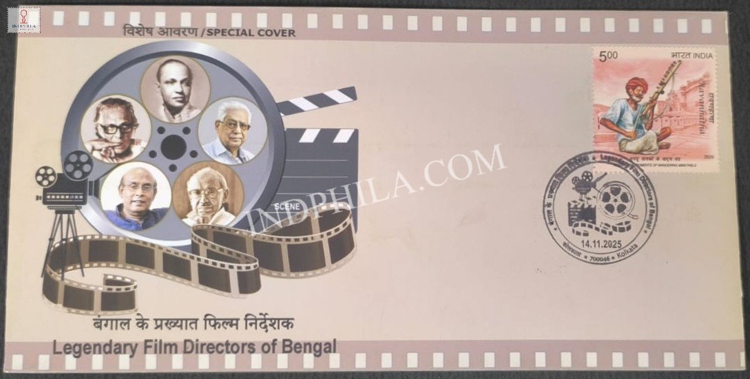 India 2025 Special Cover of Legendary Film Directors of Bengal was released on 14 November 2025 Kolkata Issued By India Post