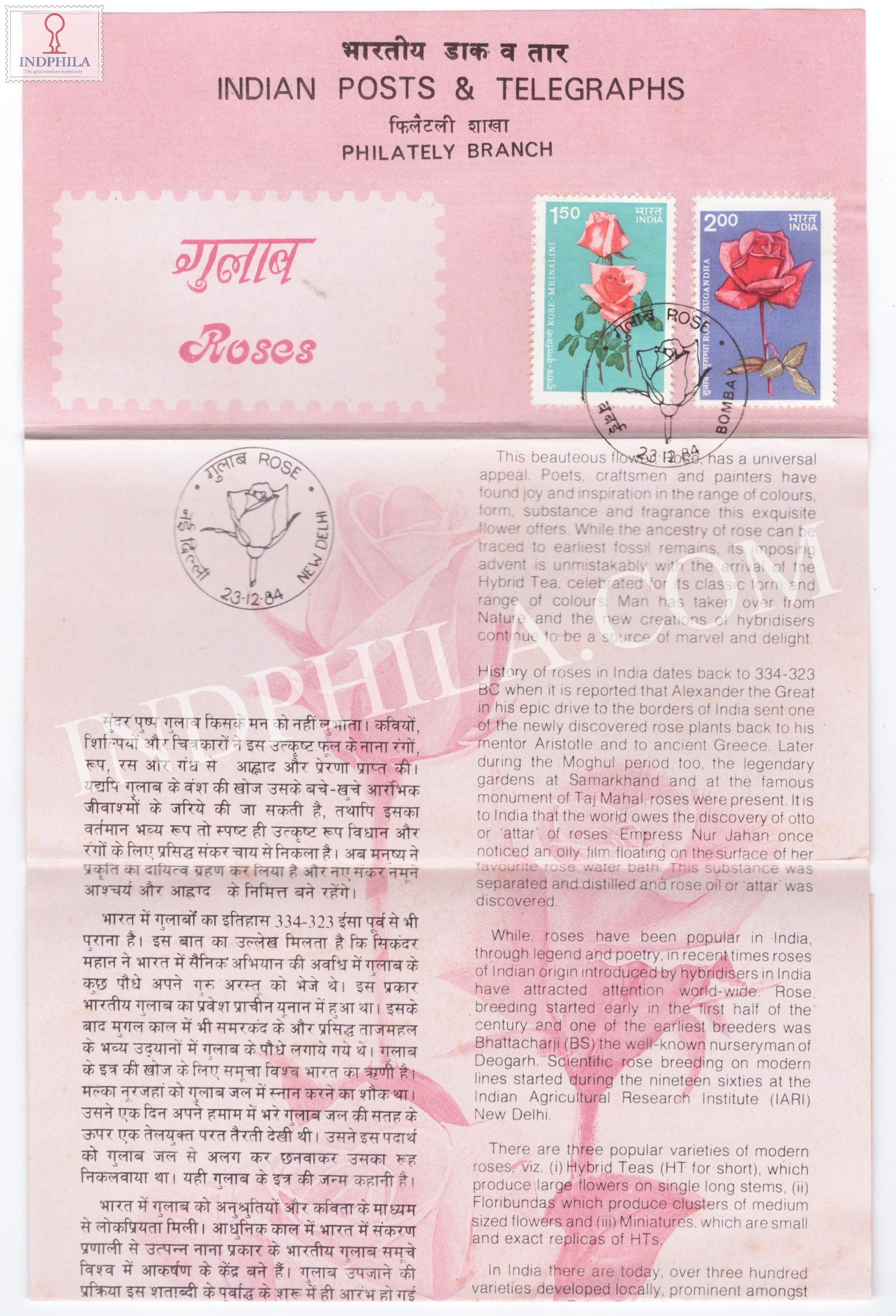 Indian Roses Brochure with First Day Cancellation 1984 Issued By Postal Department
