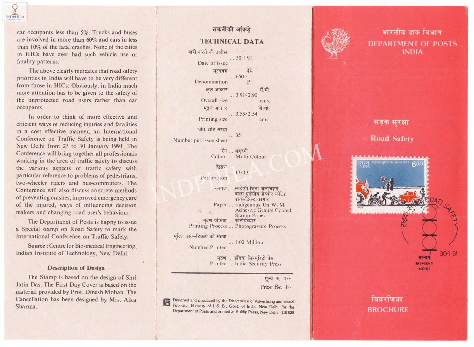 International Conference Traffic Safety New Delhi Brochure with First Day Cancelation 1991 Issued By Postal Department
