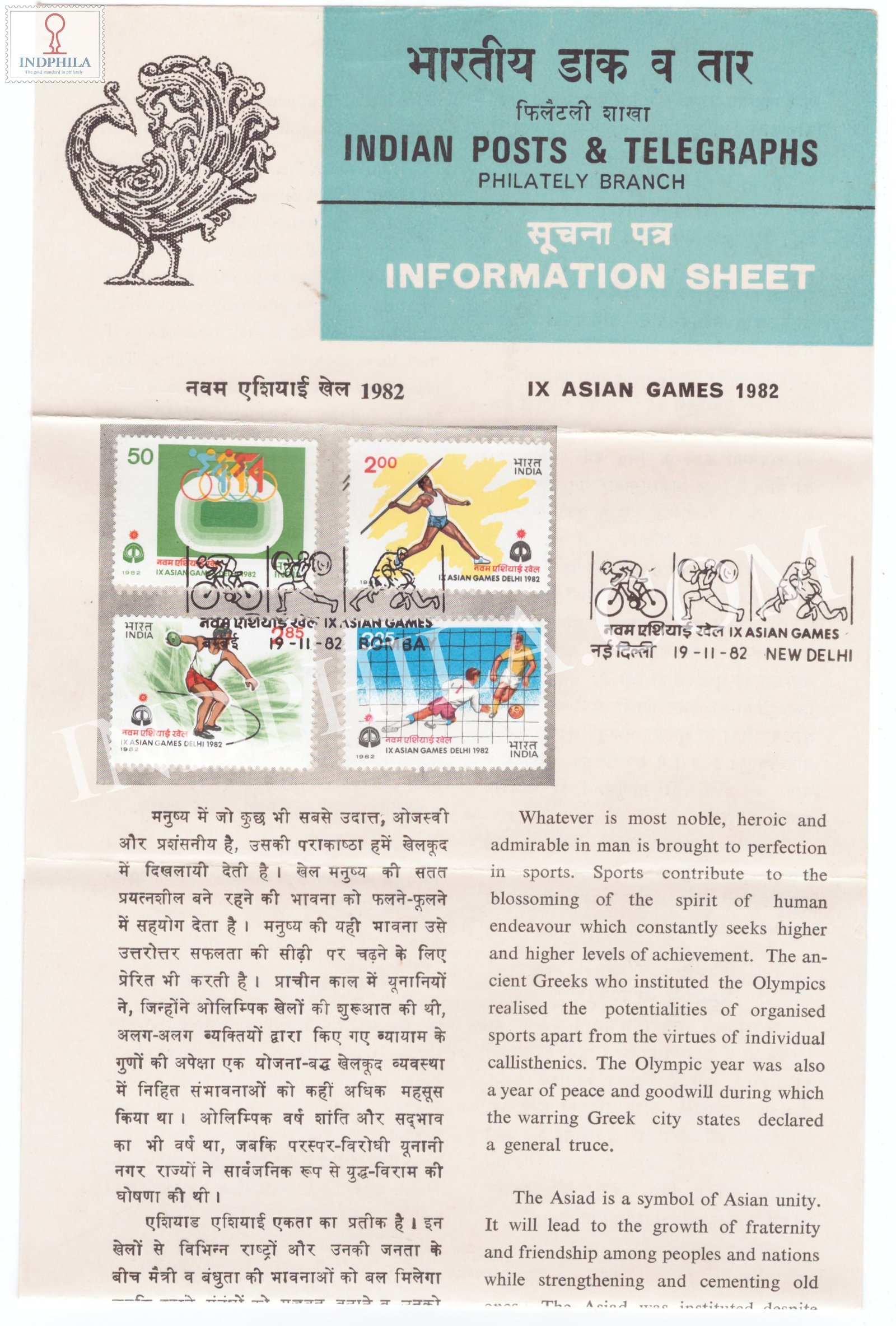 IX Asian Games New Delhi S2 Brochure with First Day Cancellation 1982 Issued By Postal Department