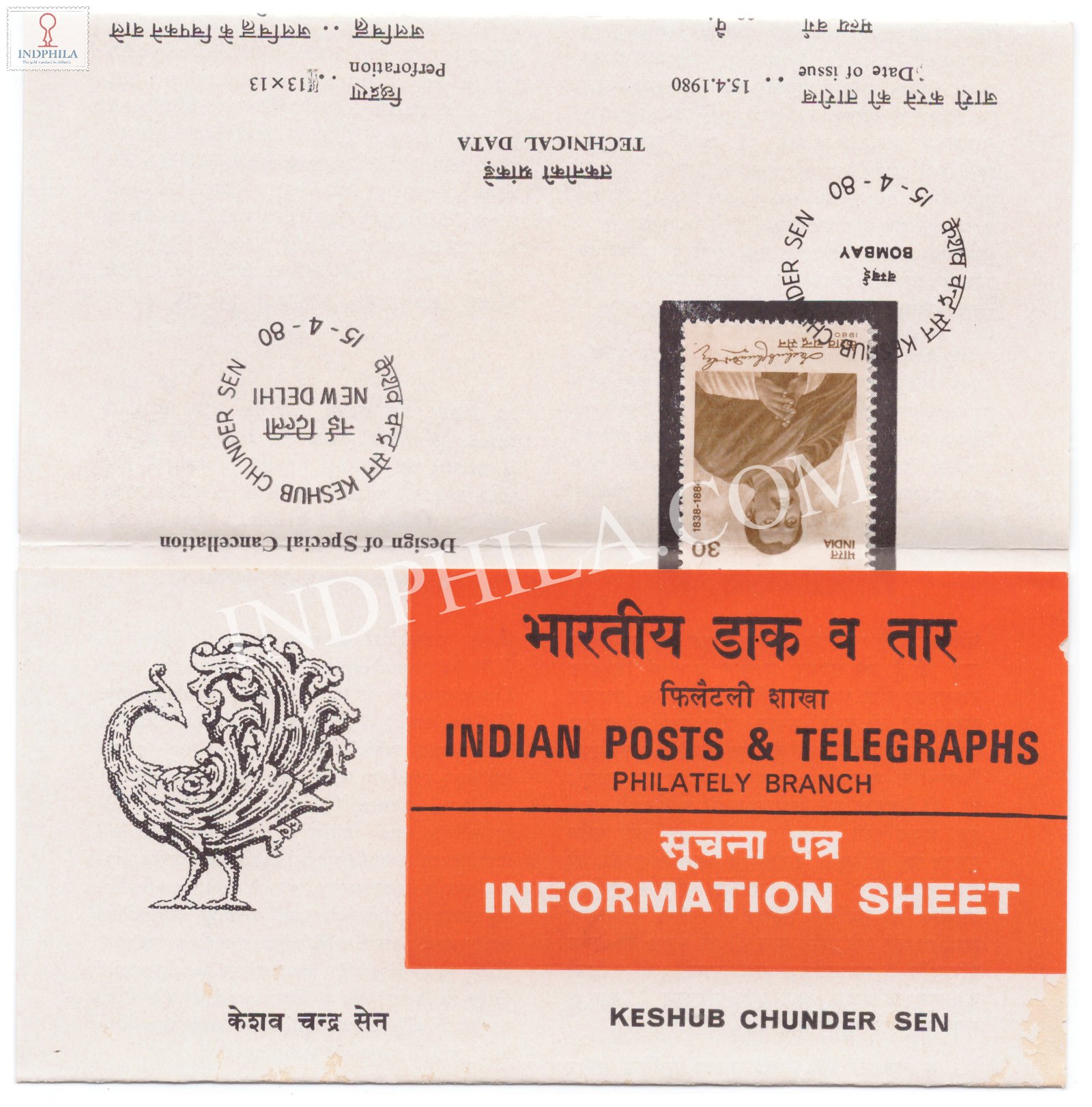 Keshab Chandra Sen Brochure with First Day Cancellation 1980