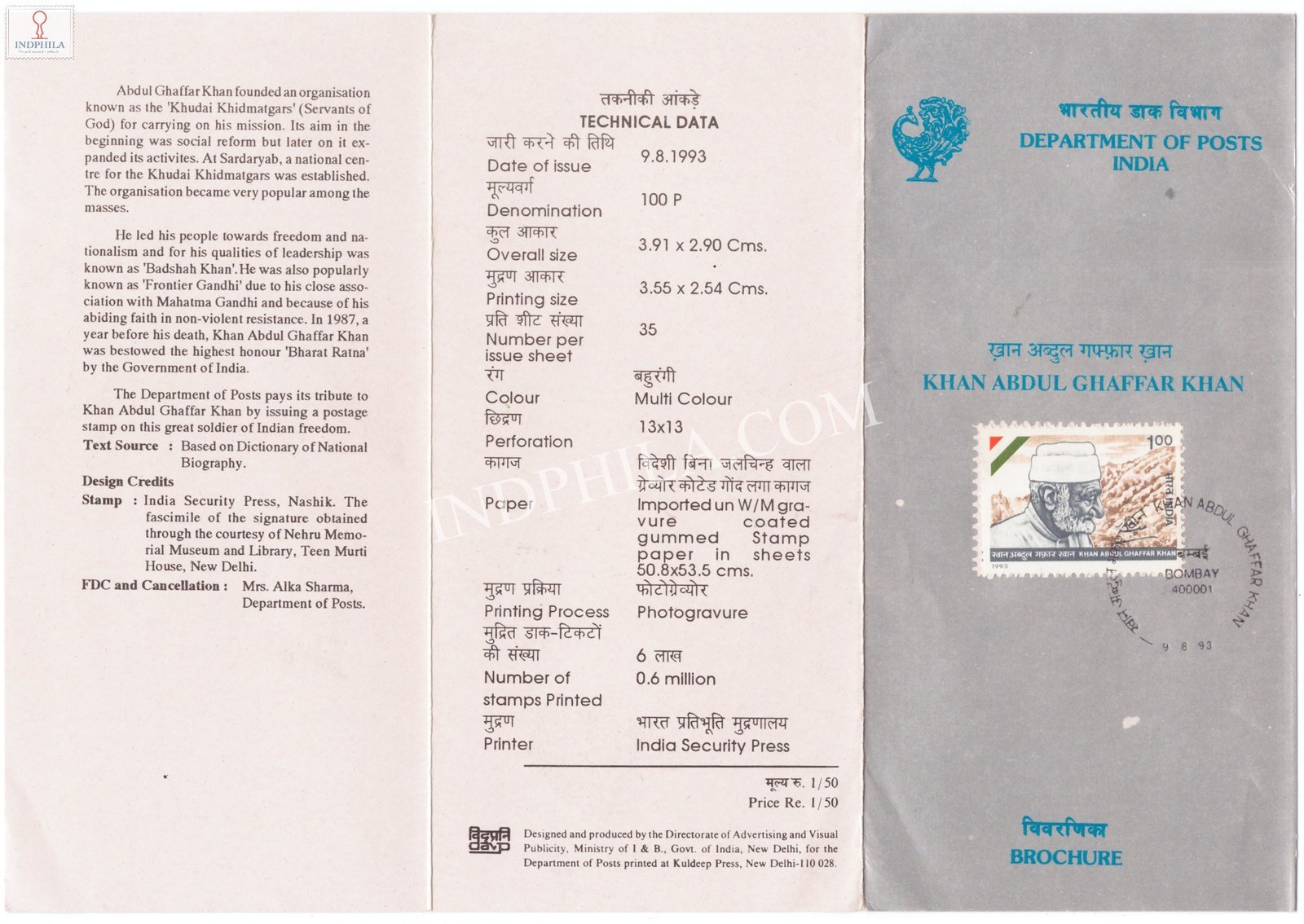 Khan Abdul Ghaffar Khan Brochure with First Day Cancelation 1993 Issued By Postal Department