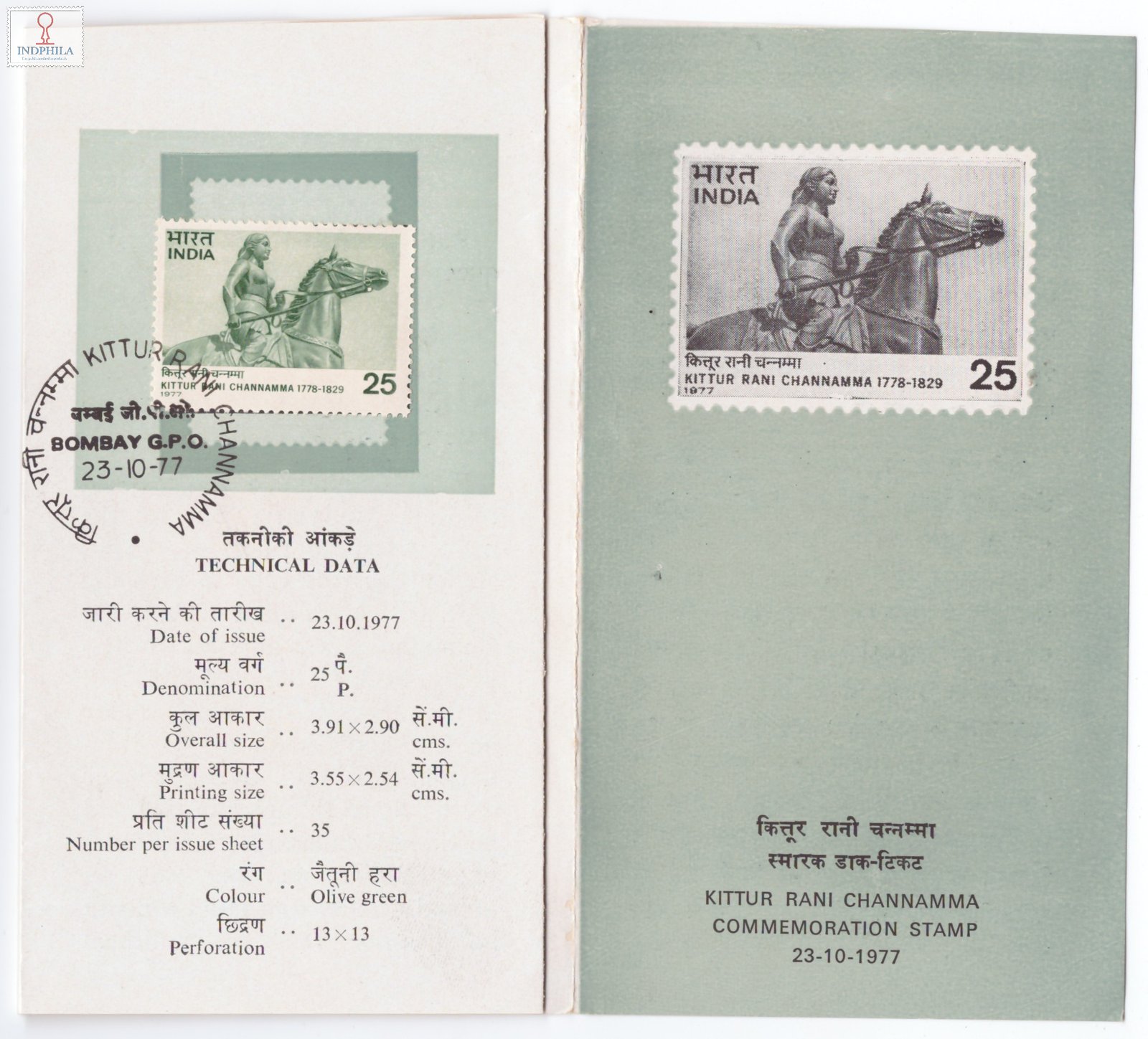 Kittur Rani Channamma Brochure with First Day Cancellation 1977 Issued By Postal Department