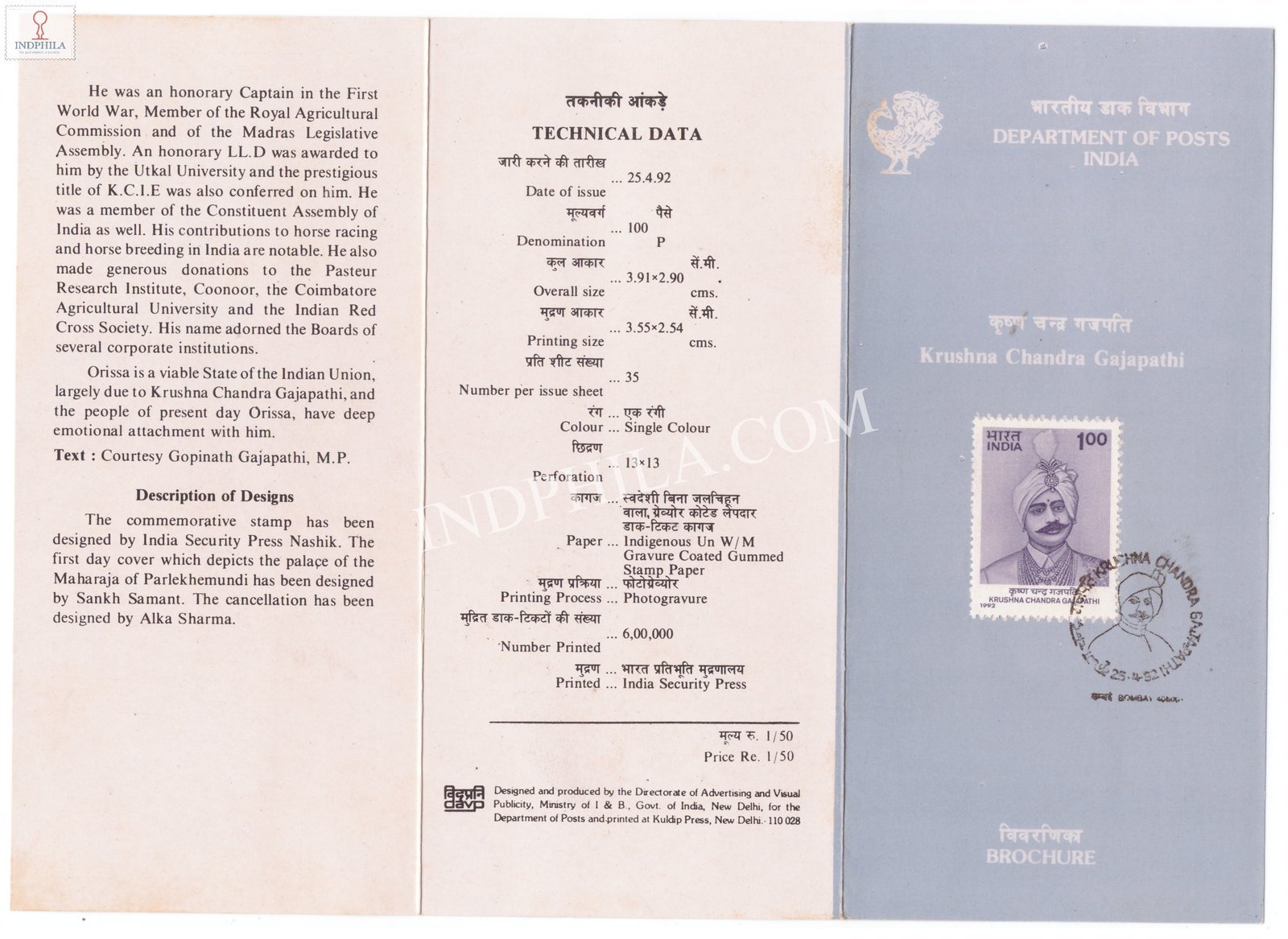 Krushna Chandra Gajapathi Brochure with First Day Cancelation 1992