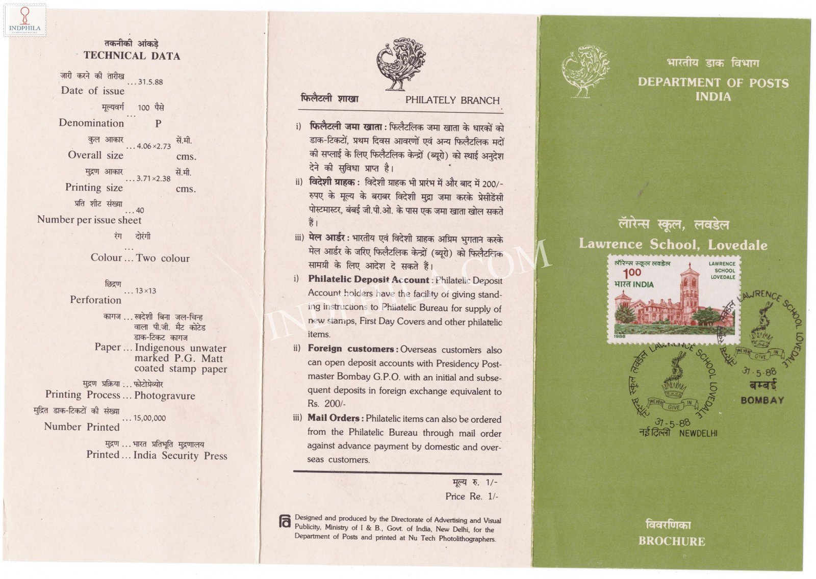 Lawrence School Lovedale Brochure with First Day Cancellation 1988 Issued By Postal Department