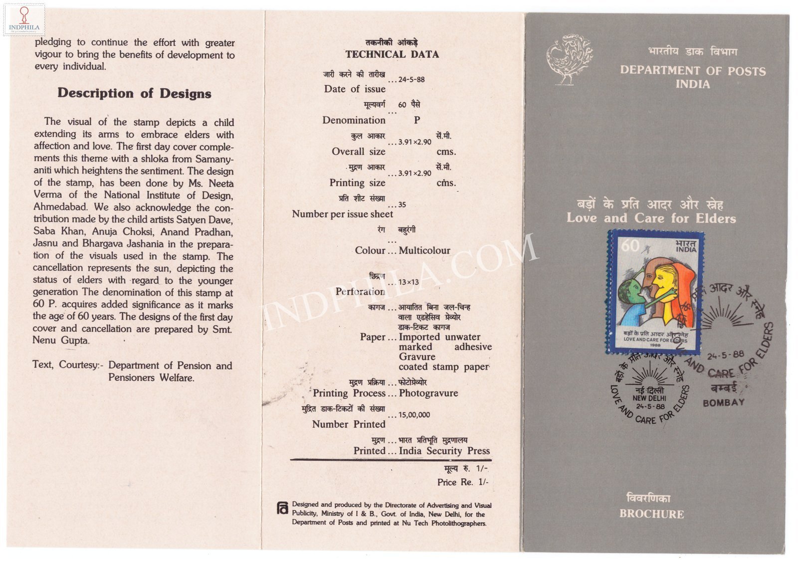 Love and Care For Elders Brochure with First Day Cancellation 1988 Issued By Postal Department