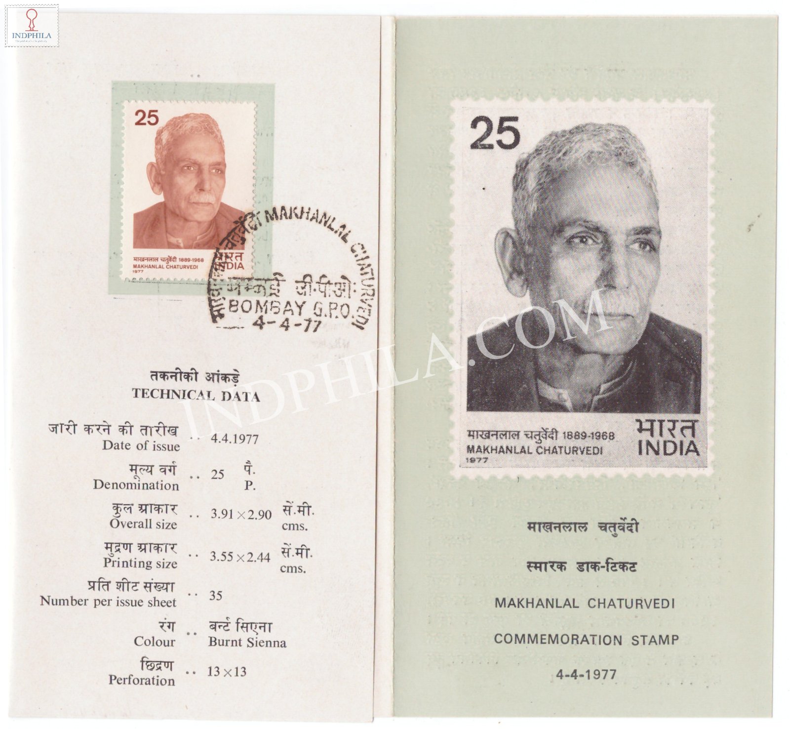 Makhanlal Chaturvedi Brochure with First Day Cancellation 1977