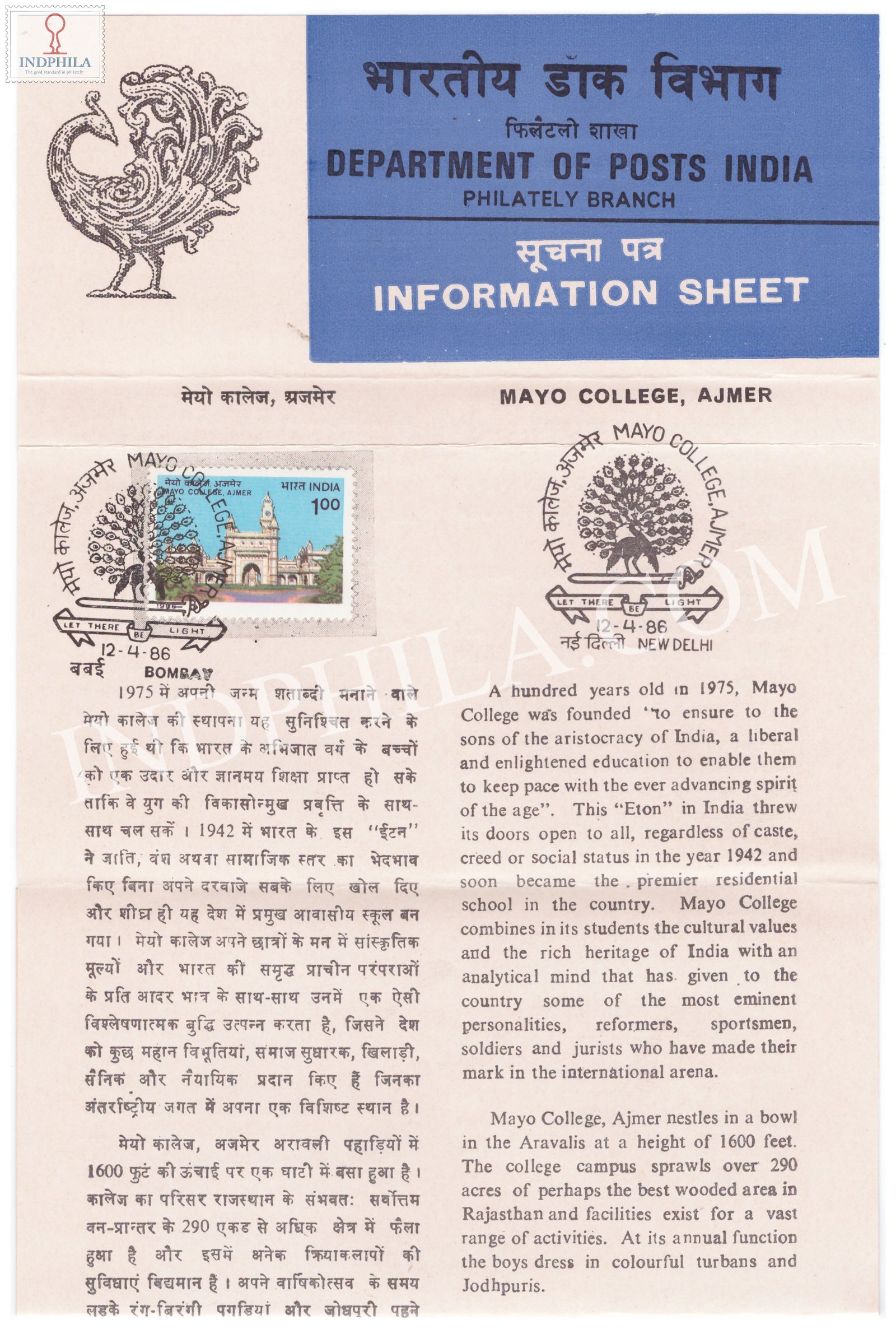 Mayo College Ajmer Brochure with First Day Cancellation 1986
