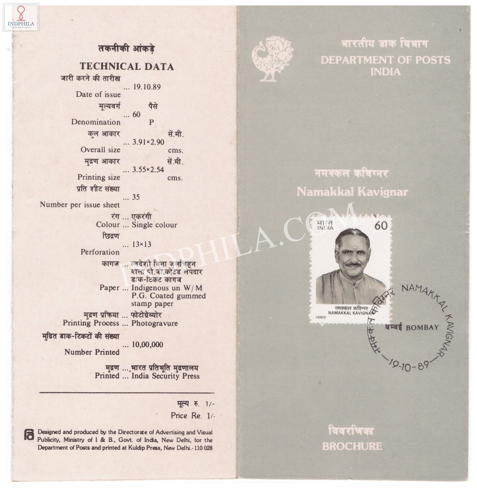 Namakkal Kavignar Brochure with First Day Cancellation 1989 Issued By Postal Department