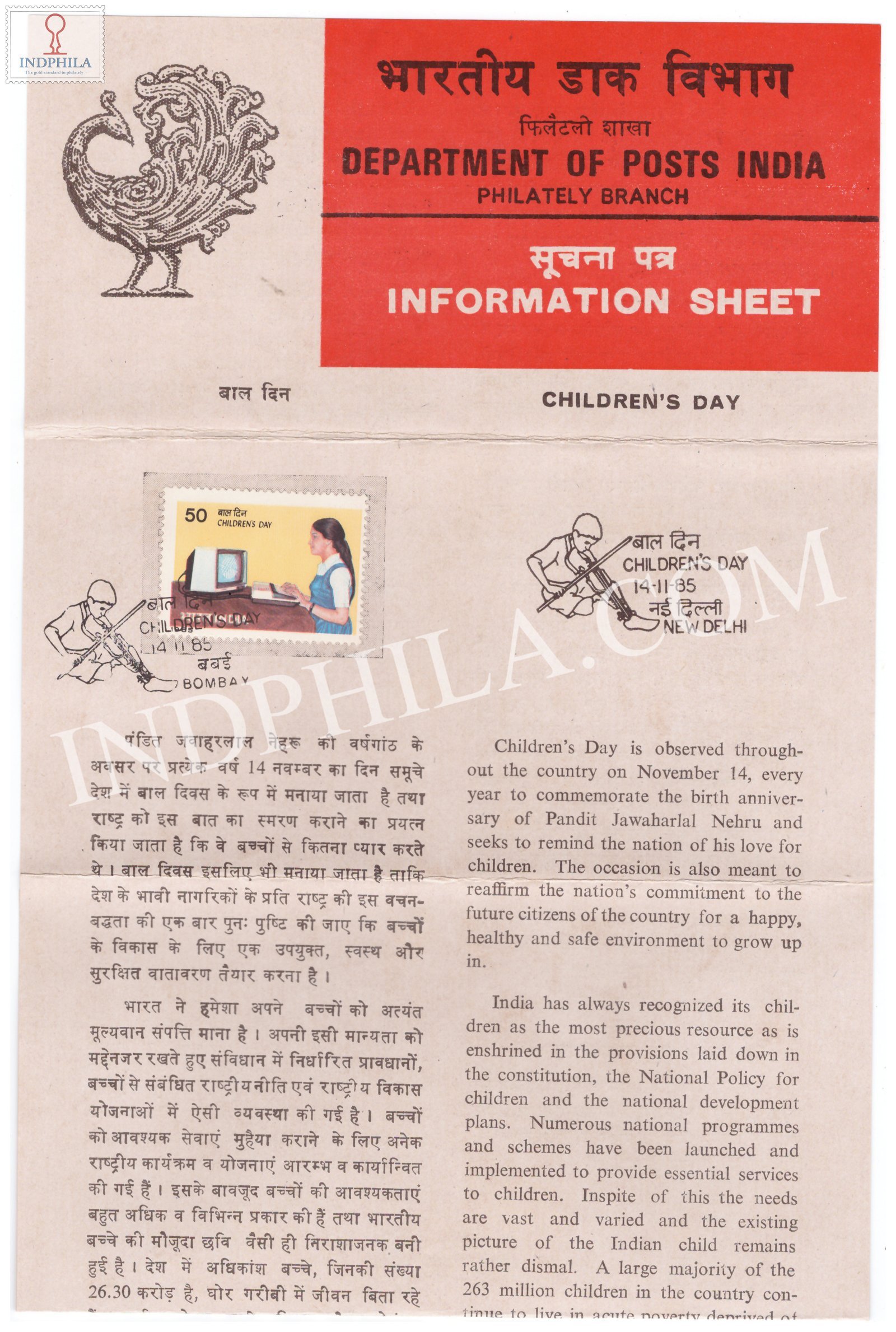 National Childrens Day Brochure with First Day Cancellation 1985 Issued By Postal Department