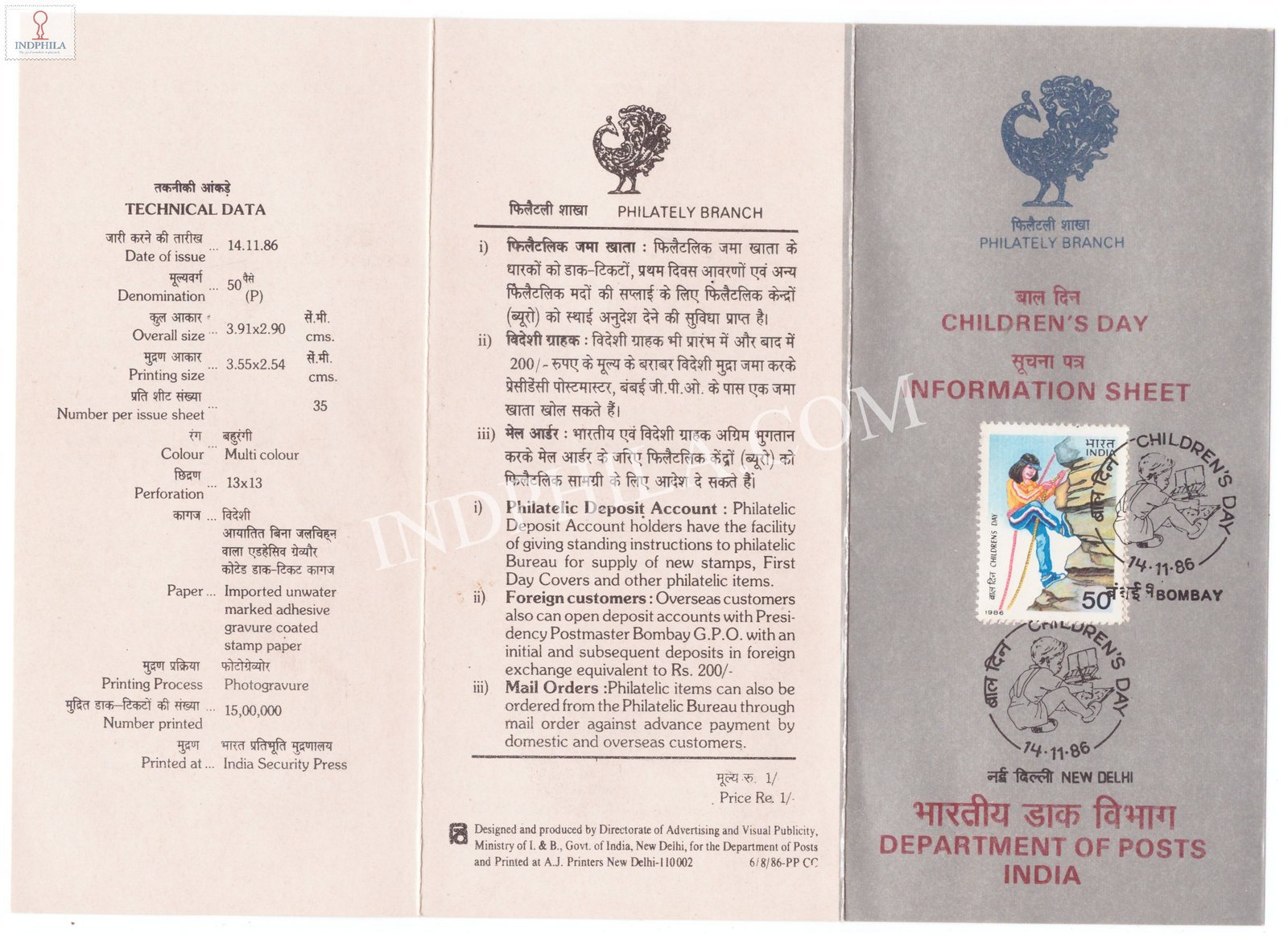 National Childrens Day Brochure with First Day Cancellation 1986 Issued By Postal Department